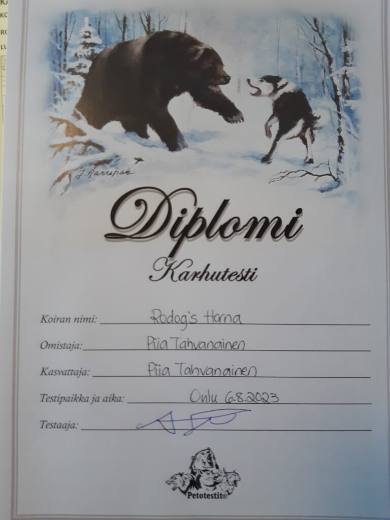 Horna (1,5v) kävi Asko Sorvon Petotestissä morjestamassa karhua: